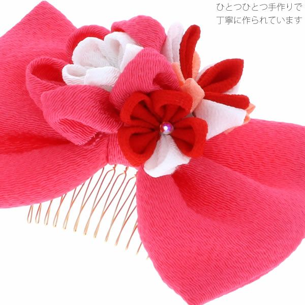 (卒業式応援75%SALE 2/19迄)リボン髪飾り「ピンク」お花髪飾り 卒業式、成人式、振袖 ちりめんリボン リボンコーム 袴髪飾り 【メール便不可】<H>ss2512wkk10