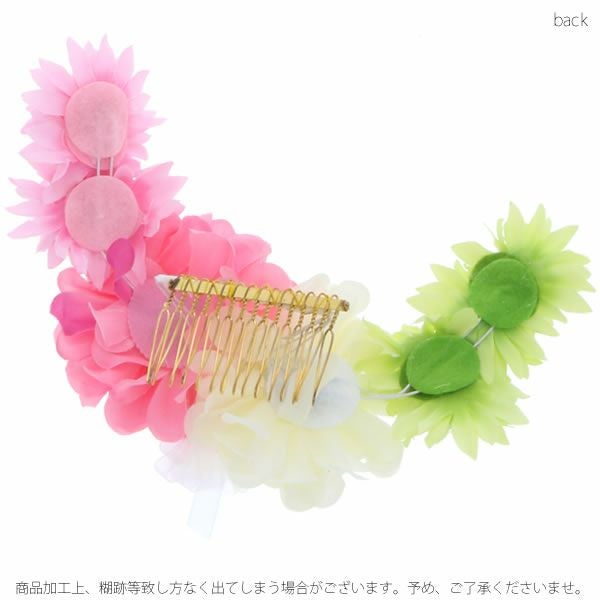 (卒業式応援75%SALE 2/19迄)【Prices down5】振袖髪飾り「ピンク、グリーン、ホワイトのお花」お花髪飾り コーム髪飾り 袴髪飾り 袴髪飾り 成人式の振袖、卒業式の袴にも 【メール便不可】ss2512wkk35
