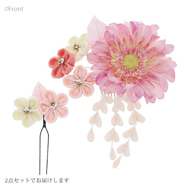 (卒業式応援75%SALE 2/19迄)【Prices down5】振袖髪飾り2点セット「ピンクパープルのお花とつまみのお花、下がり飾り」つまみ細工髪飾り 振袖髪飾り 華やか髪飾り コーム お花髪飾り (1554)【メール便不可】ss2512wkk25