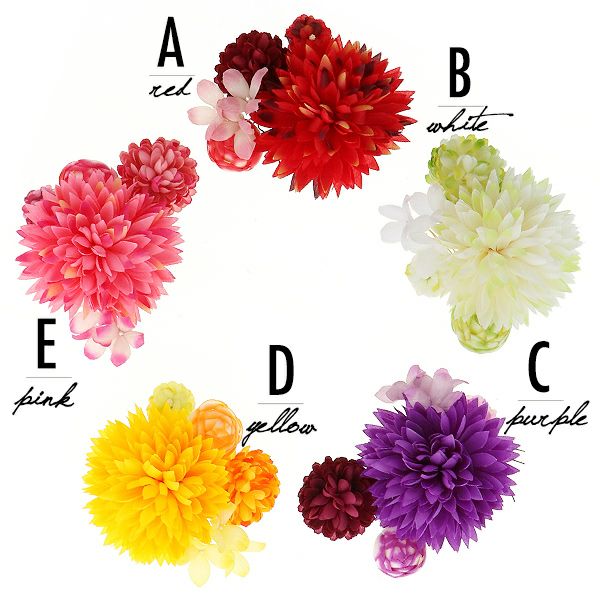 (卒業式応援75%SALE 2/19迄)お花の髪飾り 「レッド、ホワイト、パープル、イエロー、ピンク」 全5色 フラワー コーム Uピン ヘアアクセサリー お花髪飾り単品 浴衣髪飾り 振袖髪飾り【メール便不可】<H>ss2503wkk10