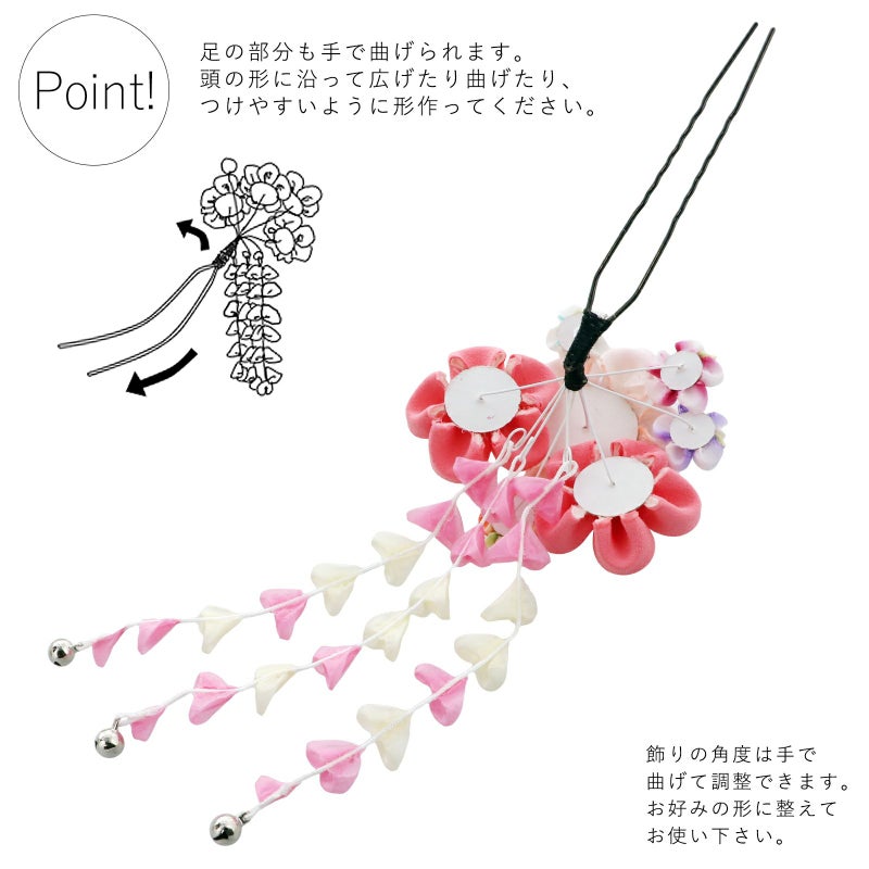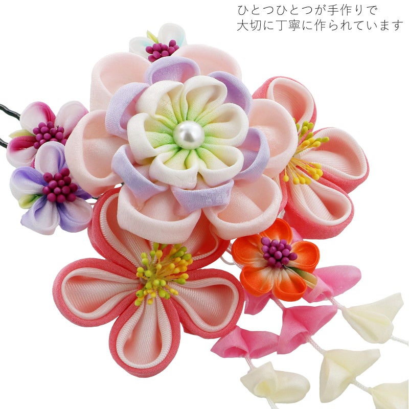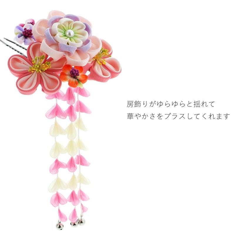 (卒業式応援75%SALE 2/19迄)【Prices down3】髪飾り 成人式 「つまみ細工かんざし 淡いピンク つまみの八重梅、房下がり」 簪 振袖用髪飾り お花髪飾り 卒業式 結婚式 着物 【メール便不可】ss2512wkk35