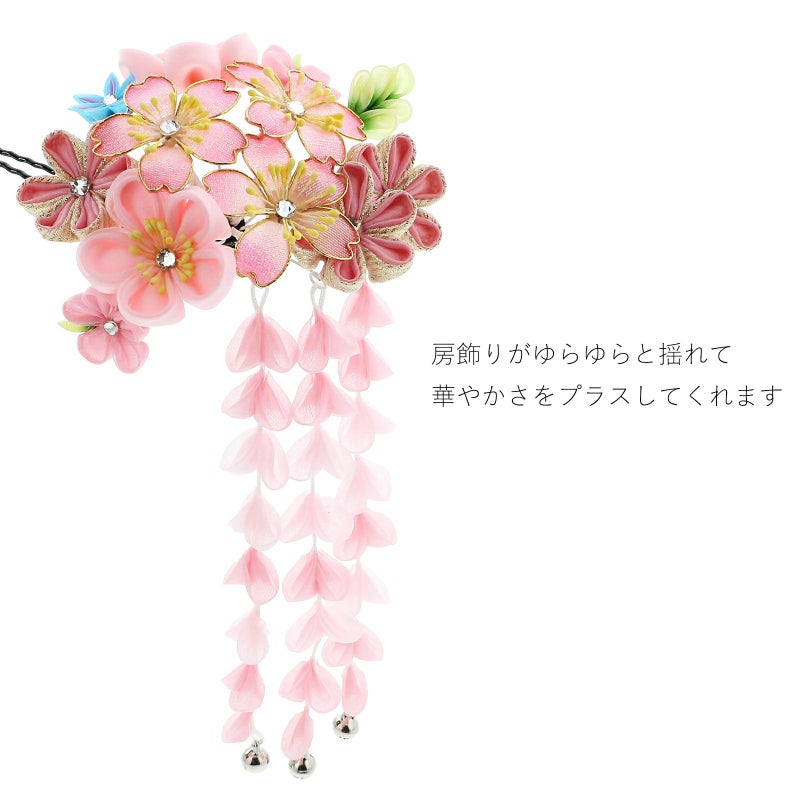 (卒業式応援75%SALE 2/19迄)【Prices down3】髪飾り 成人式 「つまみ細工かんざし ピンク 桜とつまみ、房下がり」 簪 振袖用髪飾り お花髪飾り 卒業式 結婚式 着物 【メール便不可】ss2512wkk35