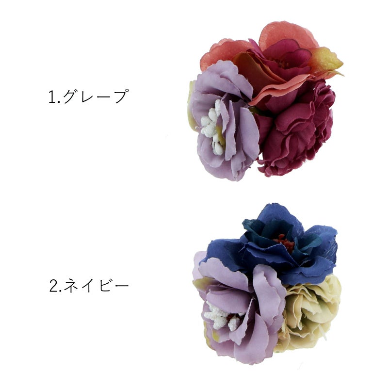 1グレープ…浅いぶどう色、落ち着いた淡い藤色、ベージュみのローズピンクなど。全体的に淡くくすんだニュアンスカラーの髪飾りです。
