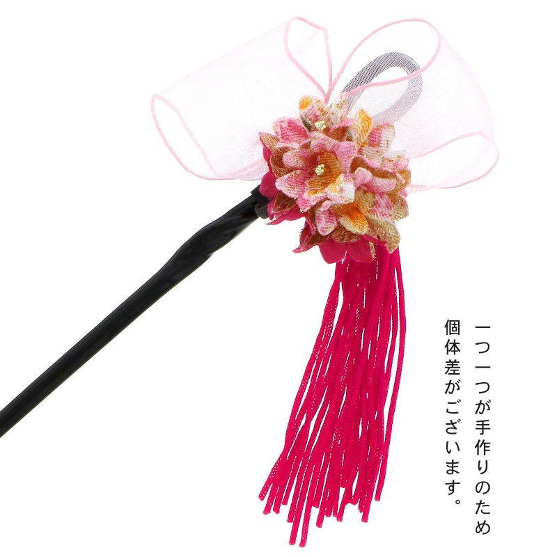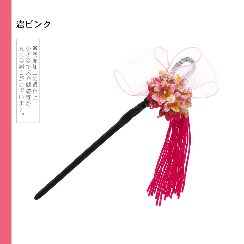 【Prices down】【訳アリ】【アウトレット品】 かんざし 髪飾り 「一本挿し リボン、花 濃ピンク」 ヘアアクセサリー 大人用・子供用 レディース 着物 和装 浴衣 カジュアル着物 七五三 女の子 ワンポイント 髪飾り単品【メール便不可】ss2503wkk40