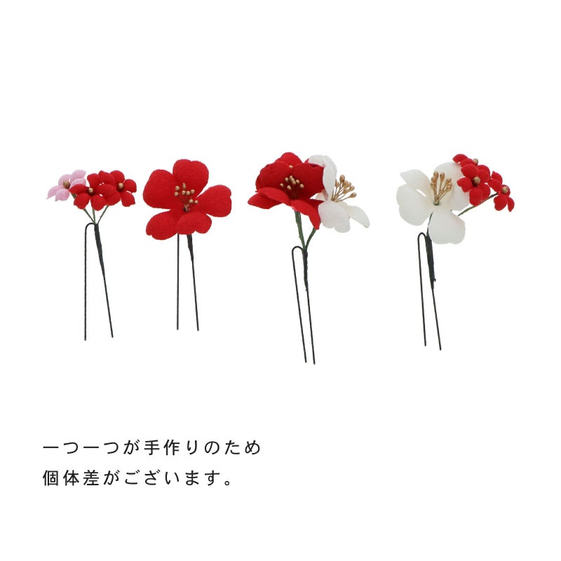 梅をセットにしたUピンタイプの髪飾り4点セットです。散らしてつけても、まとめてつけてもオススメです。他の髪飾りと組み合わせて。
