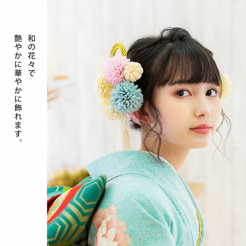 髪飾り 成人式 花髪飾り コーム Uピン 2点セット 「マムとタッセル パステルピンク No.53783」 振袖用髪飾り お花髪飾り つまみ細工 成人式 卒業式 結婚式 着物 日本製 【メール便不可】