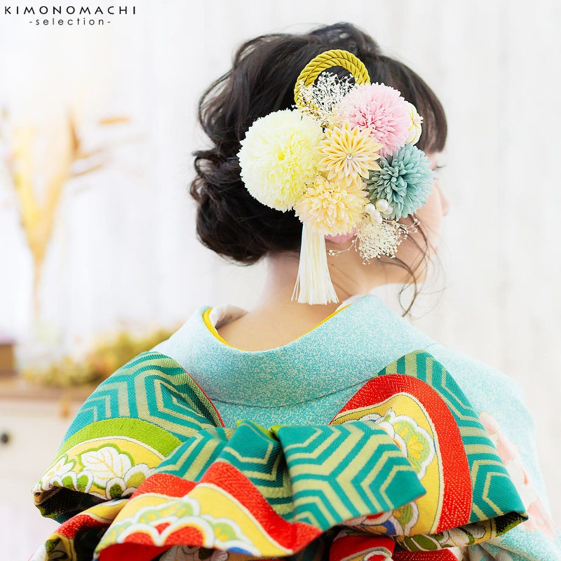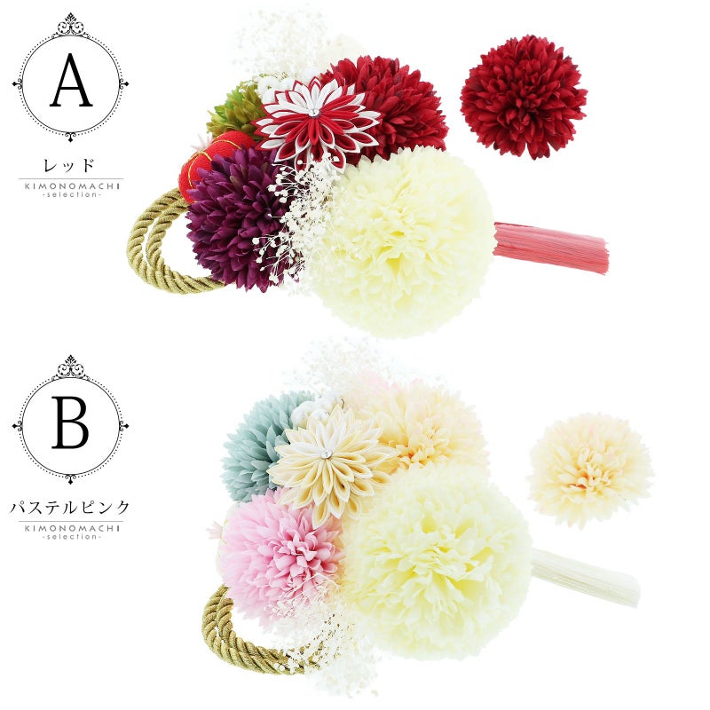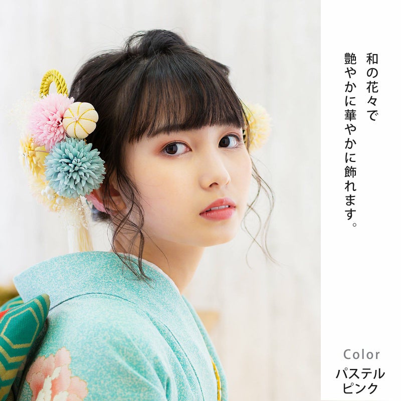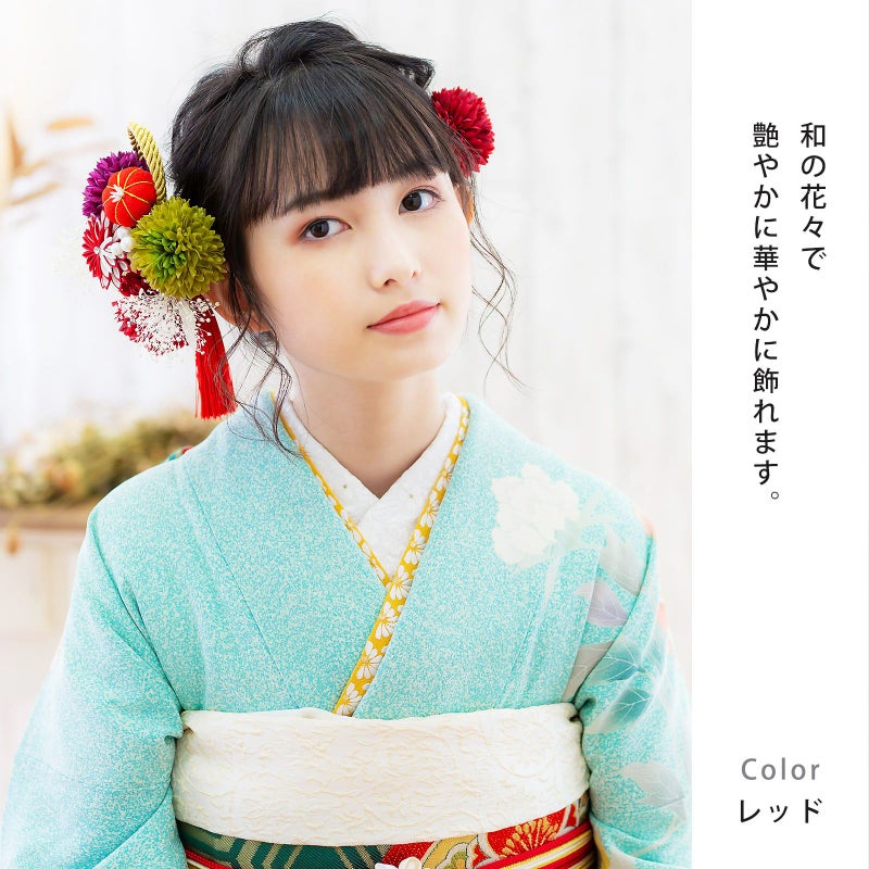 (卒業式応援75%SALE 2/19迄)髪飾り 成人式 花髪飾り コーム Uピン 2点セット 「マムとタッセル レッド・パステルピンク No.53783」 振袖用髪飾り お花髪飾り つまみ細工 成人式 卒業式 結婚式 着物 日本製 【メール便不可】<H>