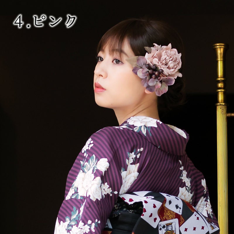 アンティークやスモーキーなカラーがかわいい、お花の髪飾りです。