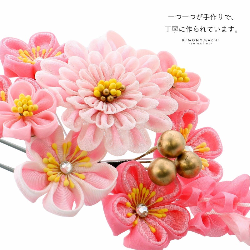 【訳アリ】【アウトレット品】Uピン 髪飾り 「花かんざし ピンク 丸つまみ、菊に梅」ヘアアクセサリー 大人用・子供用 レディース 着物 和装 振袖 ドレス 七五三 女の子 ワンポイント 髪飾り単品【メール便不可】