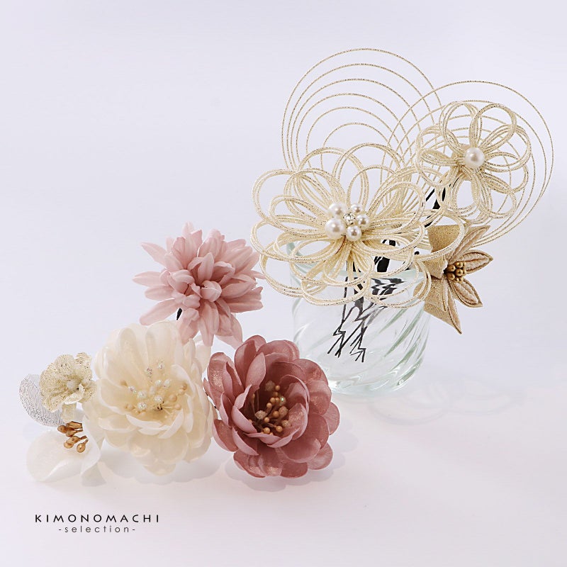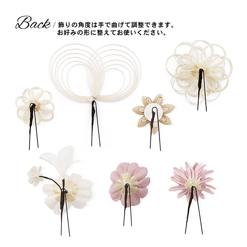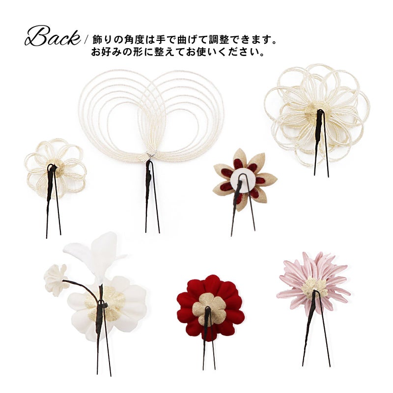 5. (卒業式応援75%SALE 2/19迄)成人式 髪飾り 卒業式 Uピンの7点セット「つまみと水引、カメリア 白系・赤系・ピンク系」日本製 水引き Uピン 振袖用髪飾り 結婚式 前撮り 後撮り 着物【メール便不可】