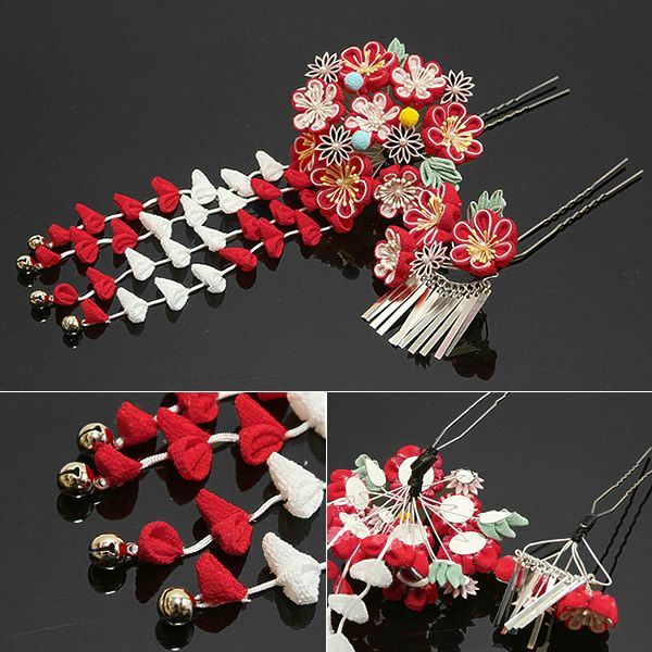 (卒業式応援最大70%OFF 2/5迄)【Prices down3】つまみ細工かんざし2本セット「朱赤×白 梅」きもの町オリジナル♪振袖 日本髪 華やかつまみ細工髪飾り【メール便不可】ss2512wkk55