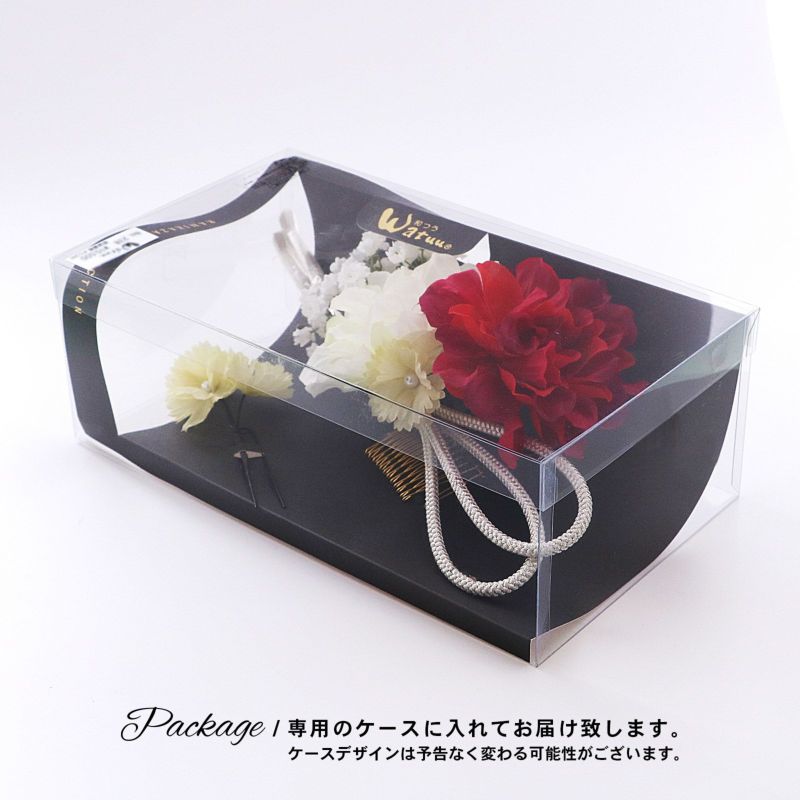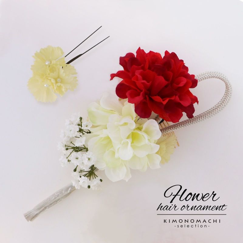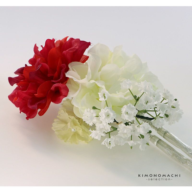(成人式卒業式10%OFFCOUPON12/25迄)【Prices down5】髪飾り 成人式 卒業式 Watuu(和つう)「赤×白色のお花、シルバーの組紐飾り」 振袖 結婚式 お花髪飾り 前撮り ヘアアクセサリー(No.238)【メール便不可】ss2512wkk45
