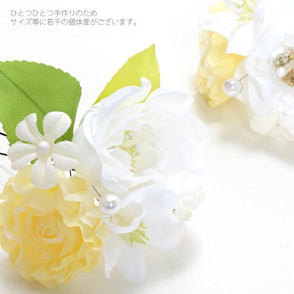 4. 【Prices down】お花髪飾り2点セット「白色 お花とパールビーズ」花結浪漫 振袖髪飾り ヘアアクセサリー ポイント髪飾り (No.516)【メール便不可】