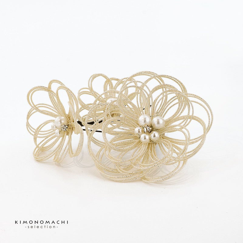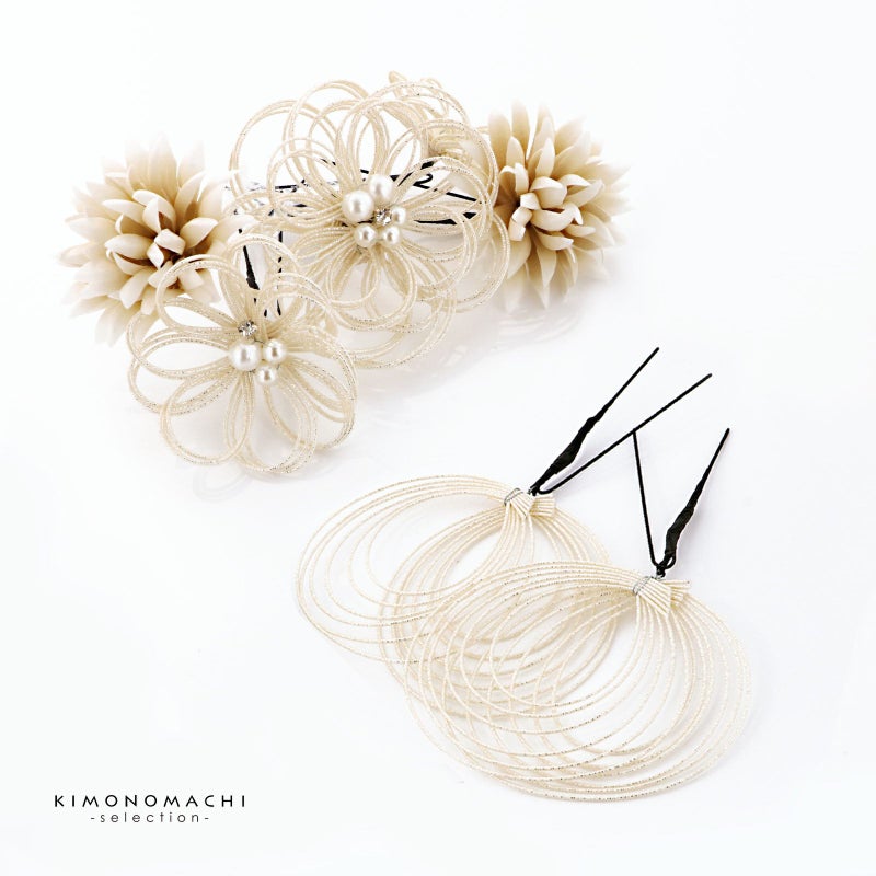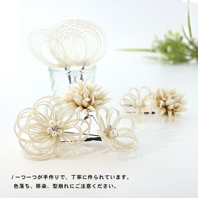 (卒業式応援75%SALE 2/19迄)成人式 髪飾り 卒業式 Uピンの7点セット「ダリアに水引の八重花 白系」日本製 水引き Uピン 振袖用髪飾り 結婚式 前撮り 後撮り 着物【メール便不可】