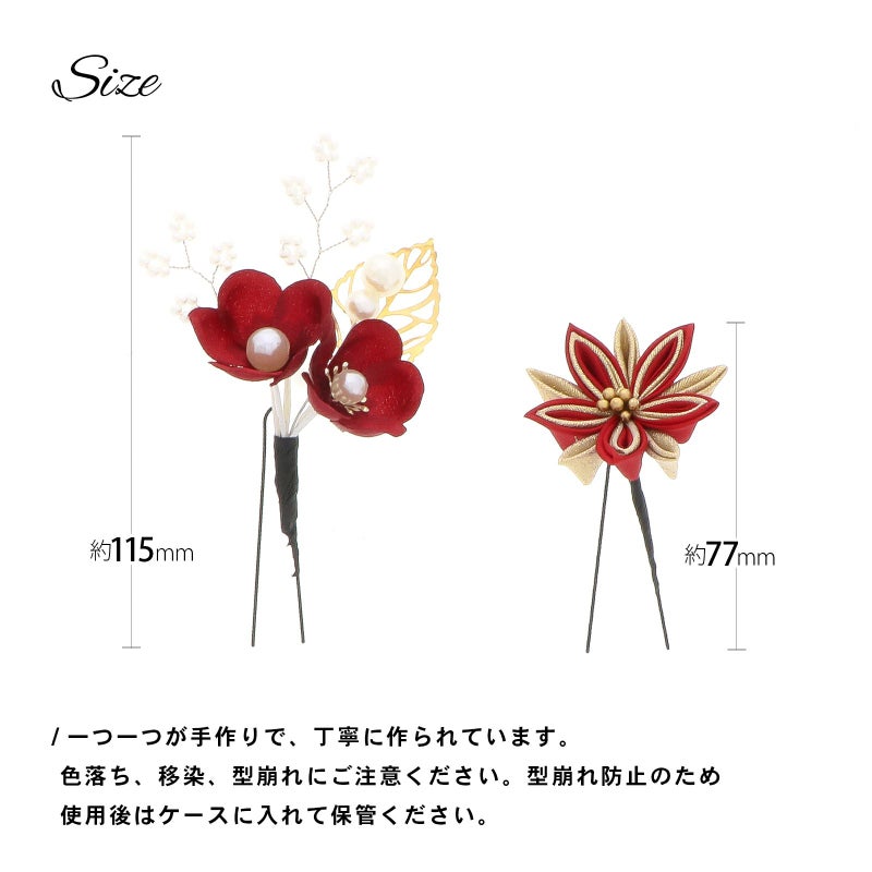 つまみ花飾り部分:直径約4.5cm / Uピン部分 長さ5.5cm