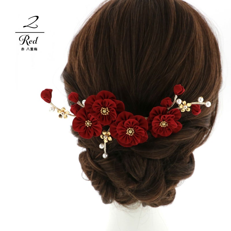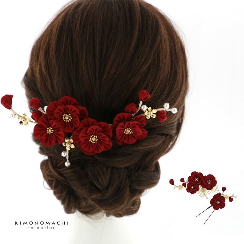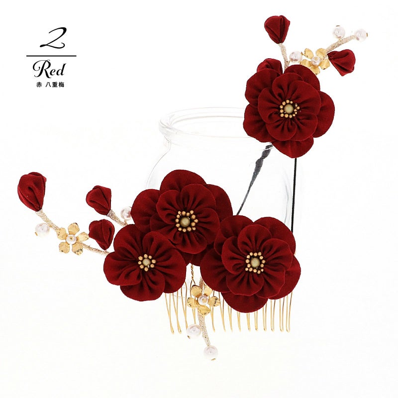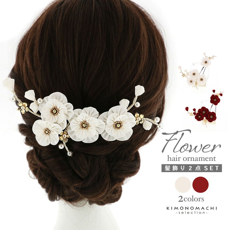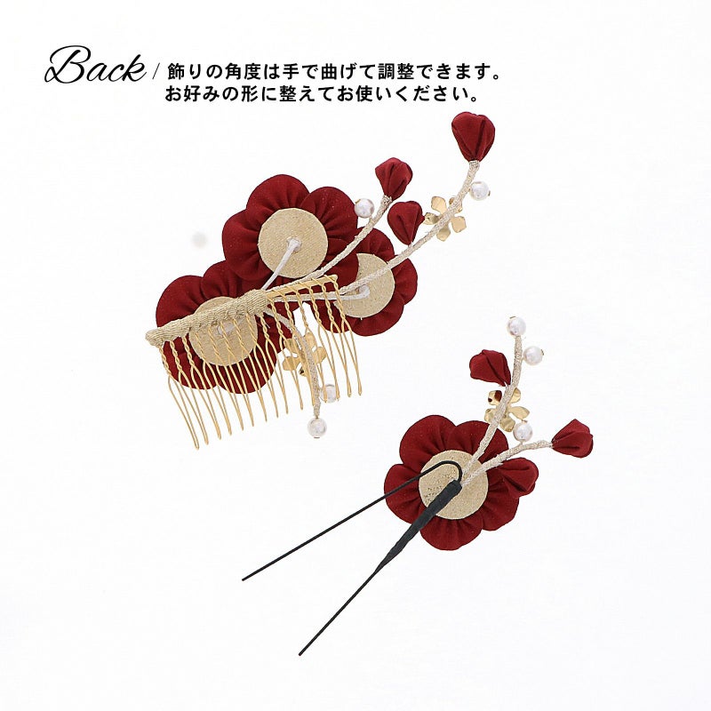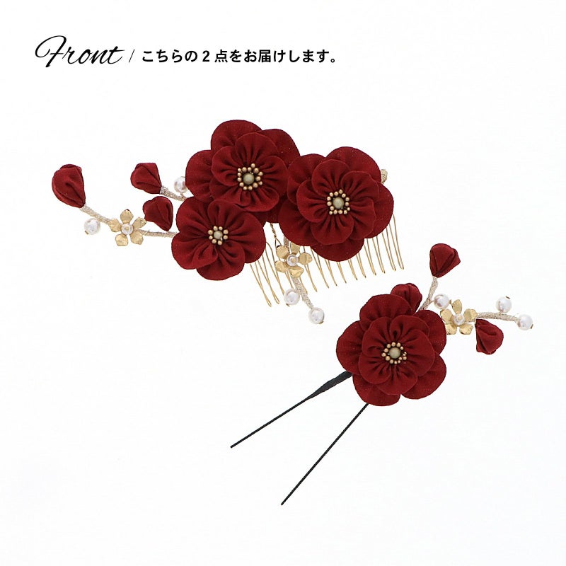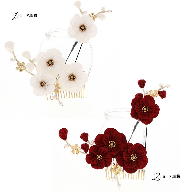 (卒業式応援75%SALE 2/19迄)成人式 髪飾り コームとUピンの2点セット「白・赤 八重梅」コーム Uピン 振袖用髪飾り お花髪飾り 成人式 卒業式 結婚式 着物【メール便不可】