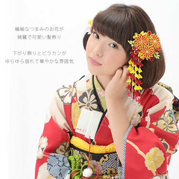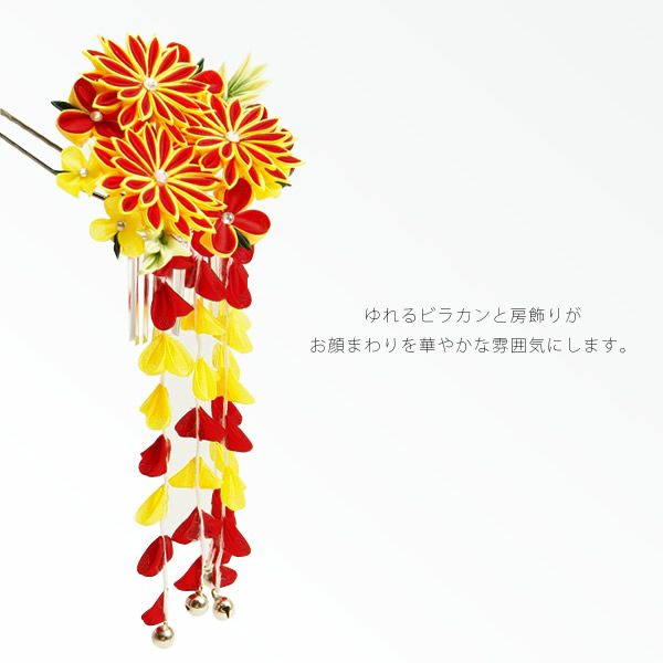 (卒業式応援最大70%OFF 2/5迄)【Prices down5】つまみ細工細工髪飾り「イエロー×レッド 剣つまみ」つまみ細工かんざし 卒業式の袴にも 振袖 簪 成人式 【メール便不可】ss2512wkk40
