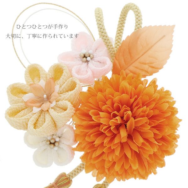 (卒業式応援最大70%OFF 2/5迄)【Prices down3】振袖髪飾り2点セット「オレンジ お花とつまみのお花、房飾り」つまみ細工髪飾り 振袖髪飾り 華やか髪飾り コーム お花髪飾り (1758)【メール便不可】ss2512wkk25