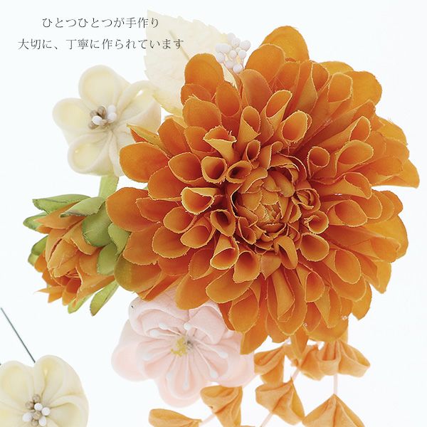 (卒業式応援最大70%OFF 2/5迄)【Prices down4】振袖髪飾り2点セット「オレンジ色のお花、下がり飾り」つまみ細工髪飾り 振袖髪飾り 華やか髪飾り コーム お花髪飾り (1798)【メール便不可】ss2512wkk15