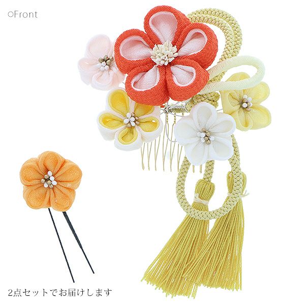 (卒業式応援最大70%OFF 2/5迄)【Prices down4】振袖髪飾り2点セット「オレンジ、イエローのつまみのお花、組紐、房飾り」つまみ細工髪飾り 振袖髪飾り 華やか髪飾り コーム お花髪飾り (1795)【メール便不可】ss2512wkk15