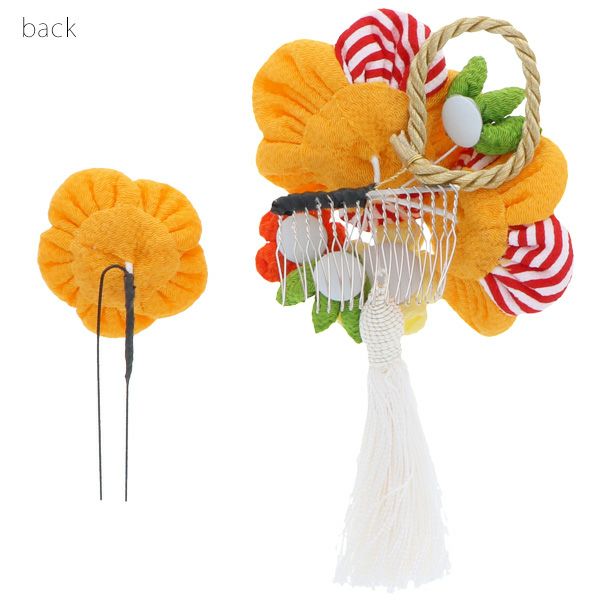 (卒業式応援最大70%OFF 2/5迄)【Prices down5】つまみ細工髪飾り2点セット「黄色 ふっくらつまみのお花」髪飾り 成人式、結婚式 振袖髪飾り お花髪飾り 房飾り No.52405 イエロー【メール便不可】ss2512wkk25