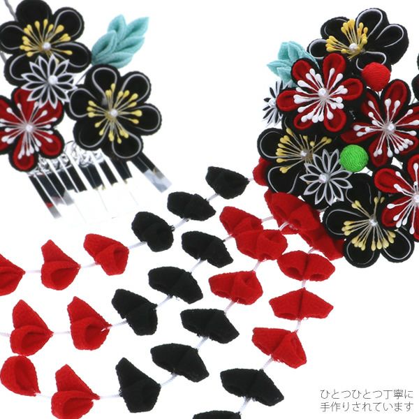 (卒業式応援75%SALE 2/19迄)【Prices down3】つまみ細工かんざし2本セット「黒×赤 梅」きもの町オリジナル♪振袖 日本髪 華やかつまみ細工髪飾り【メール便不可】ss2512wkk60