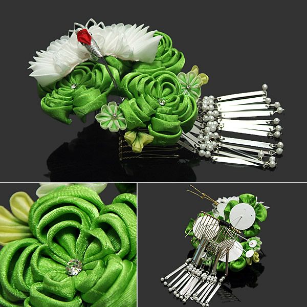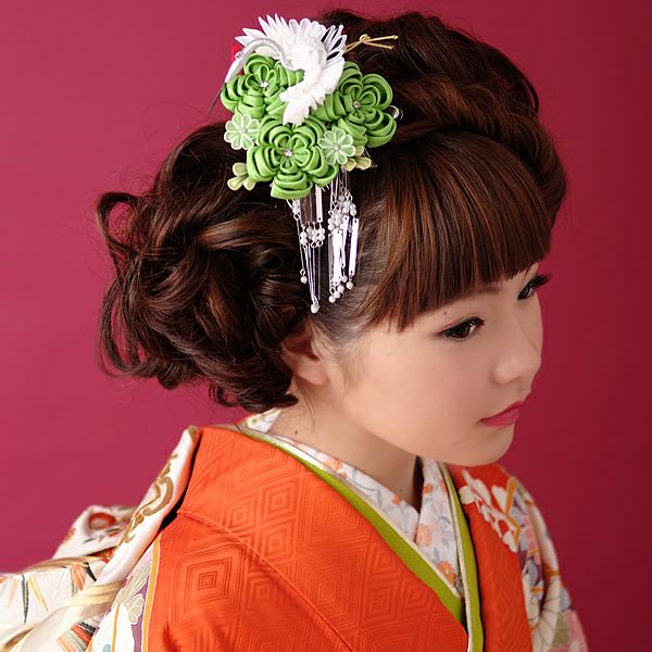 (卒業式応援75%SALE 2/19迄)【Prices down3】つまみ細工髪飾り「グリーンのお花、翔鶴」舞妓 つまみ髪飾り 振袖用髪飾り 日本髪 振袖 【メール便不可】0ss2512wkk70