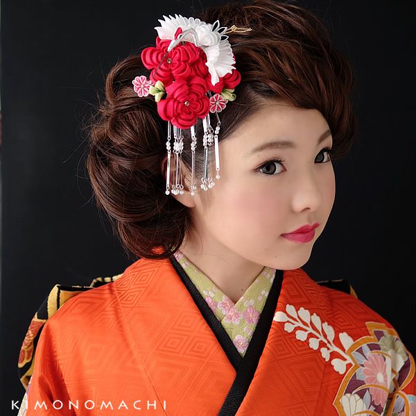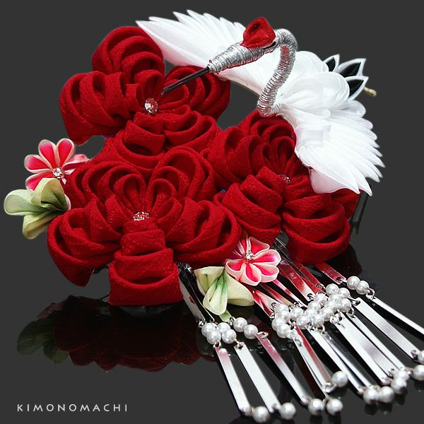 (卒業式応援75%SALE 2/19迄)【Prices down】つまみ細工髪飾り「赤色のお花、翔鶴」舞妓 つまみ髪飾り 振袖用髪飾り 日本髪 振袖 (1528)【メール便不可】<H>ss2503wkk10