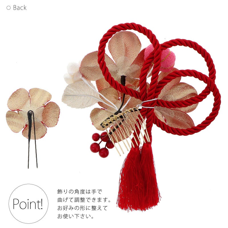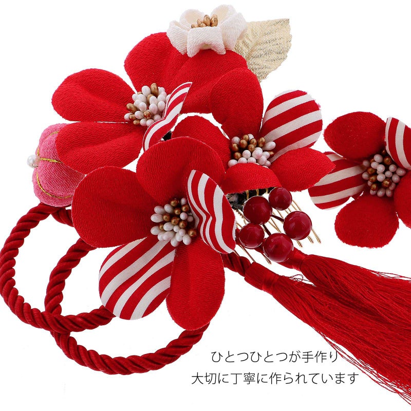 (卒業式応援75%SALE 2/19迄)【Prices down2】髪飾り コームとUピン 2点セット 「赤と赤白縞 (No.52798赤)」 振袖用髪飾り お花髪飾り 成人式 卒業式 結婚式 着物 【メール便不可】<H>ss2512wkk35