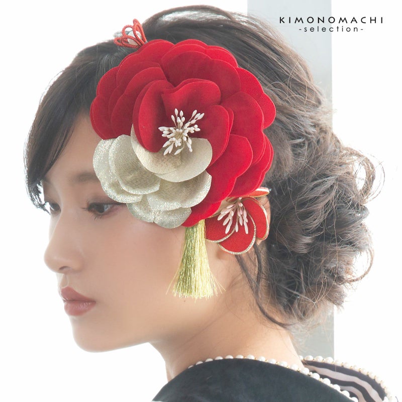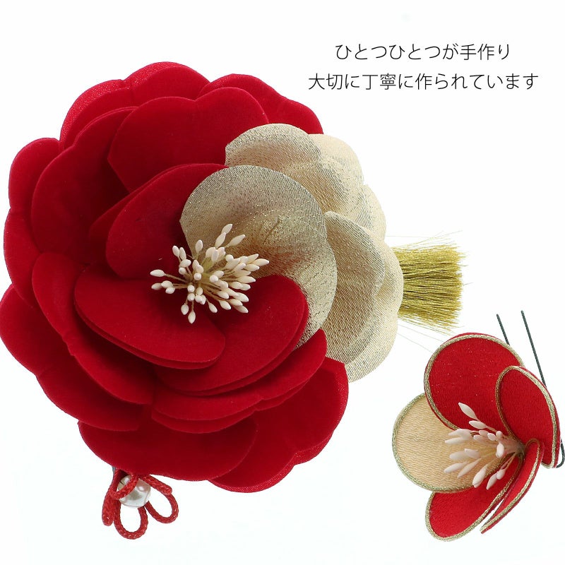 (卒業式応援75%SALE 2/19迄)髪飾り コームとUピン 2点セット 「バイカラー 赤 (#53108赤)」 振袖用髪飾り お花髪飾り 成人式 卒業式 結婚式 着物 【メール便不可】<H>ss2512wkk10