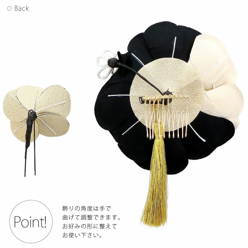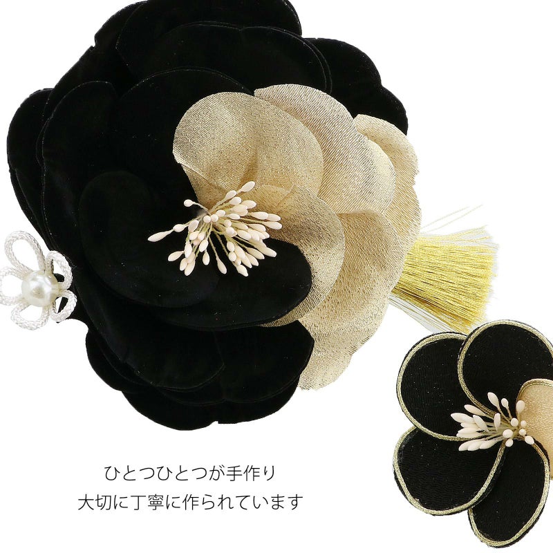 (卒業式応援75%SALE 2/19迄)髪飾り コームとUピン 2点セット 「バイカラー 黒 (#53108黒ゴールド)」 振袖用髪飾り お花髪飾り 成人式 卒業式 結婚式 着物 【メール便不可】<H>ss2512wkk10