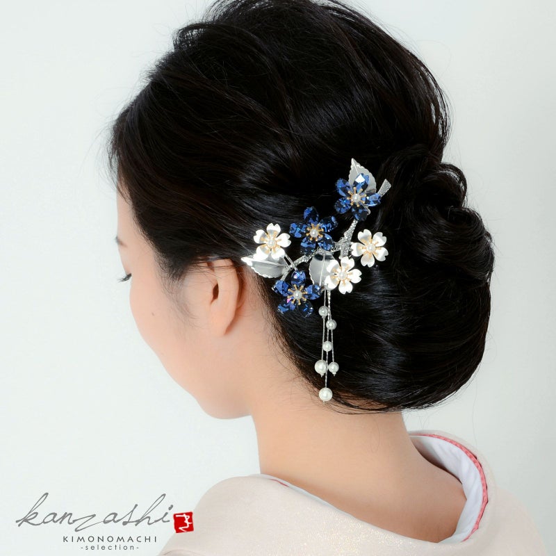 (卒業式応援75%SALE 2/19迄)髪飾り かんざし 「花月ピン 夜桜 F18-313E」 簪 勝山 花かんざし 日本髪 和装 着物 【メール便不可】<H>