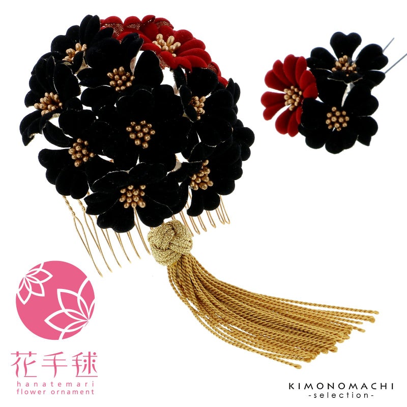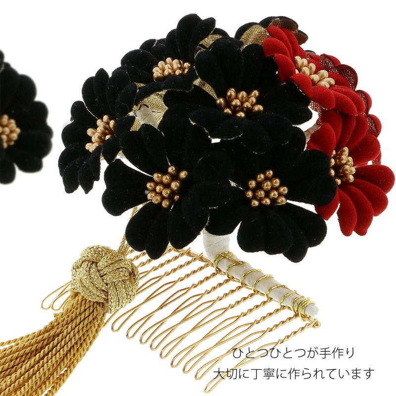 (卒業式応援75%SALE 2/19迄)髪飾り 成人式 コームとUピン 2点セット 「お花の飾り 黒×赤 ベロア風 No.1289」 振袖用髪飾り お花髪飾り 成人式 卒業式 結婚式 着物 【メール便不可】<H>ss2512wkk10
