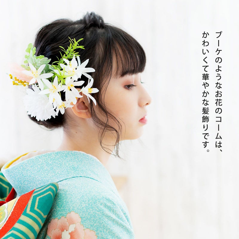 振袖にぴったりのかわいくて華やかな髪飾りです。前撮り撮影、成人式、結婚式にはもちろん、卒業式の袴にも。