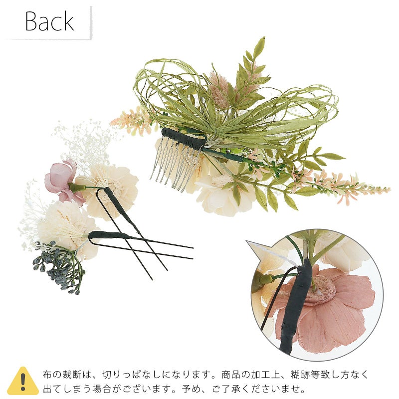 ドライフラワー、ポリエステル繊維、小花・木の実:人工加工物、鉄(Uピン、コーム)