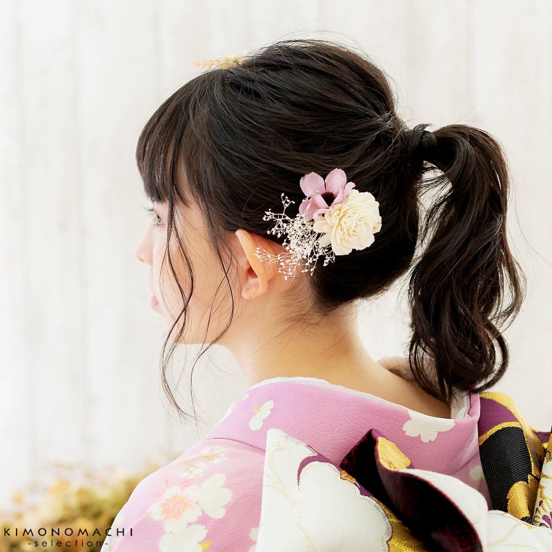 振袖にぴったりのかわいくて華やかな髪飾りです。前撮り撮影、成人式、結婚式にはもちろん、卒業式の袴にも。