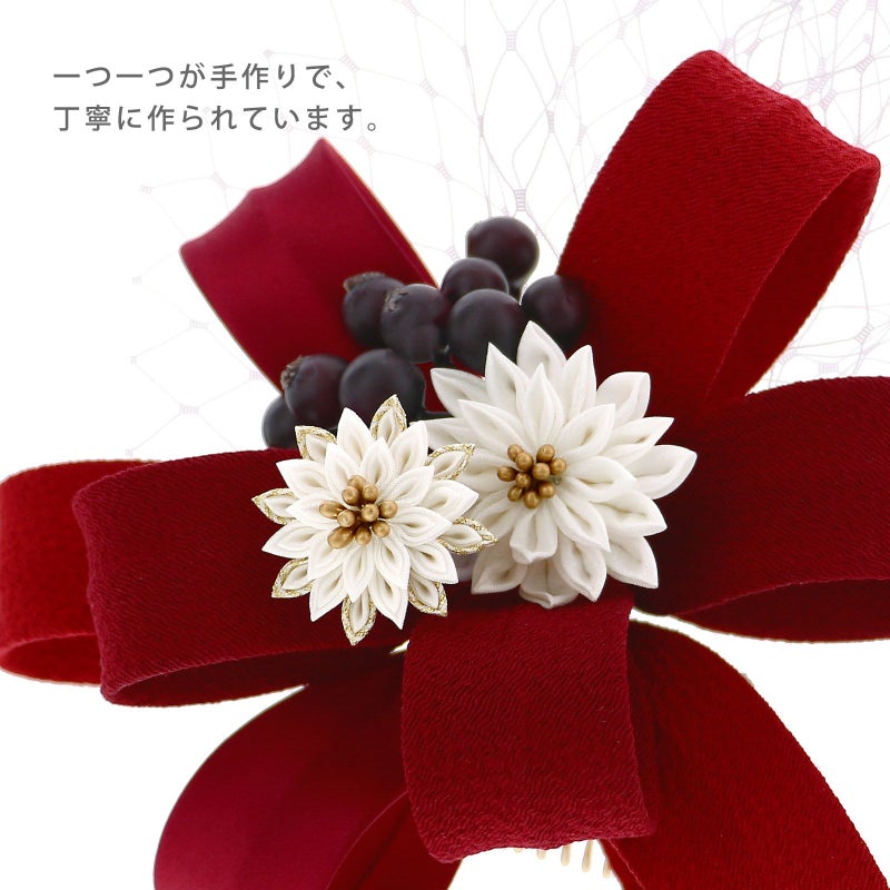 振袖にぴったりのかわいくて華やかな髪飾りです。前撮り撮影、成人式、結婚式にはもちろん、卒業式の袴にも。