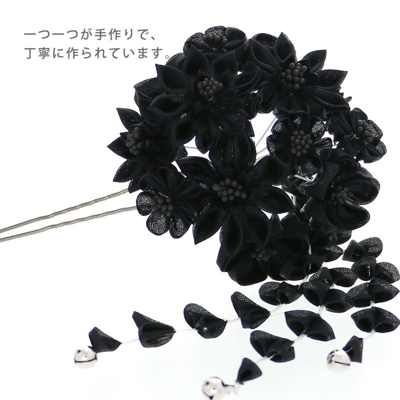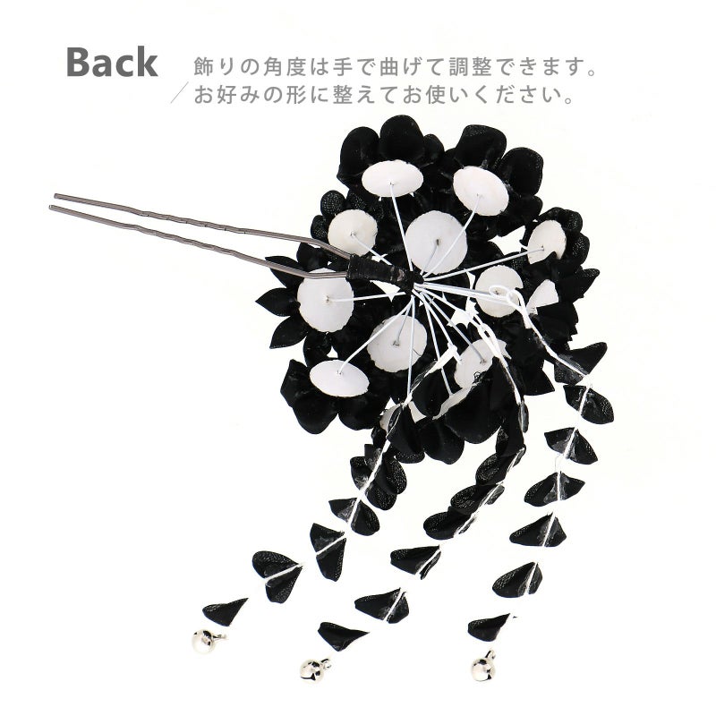 成人式 髪飾り つまみ かんざし 「ダリア 房下がり ブラック」振袖用髪飾り お花髪飾り 成人式 卒業式 結婚式 着物 【メール便不可】