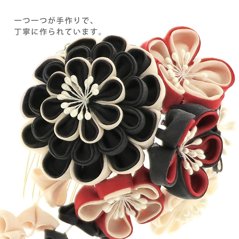 伝統技法であるつまみ細工で作られた、振袖にぴったりのかわいくて華やかな髪飾りです。