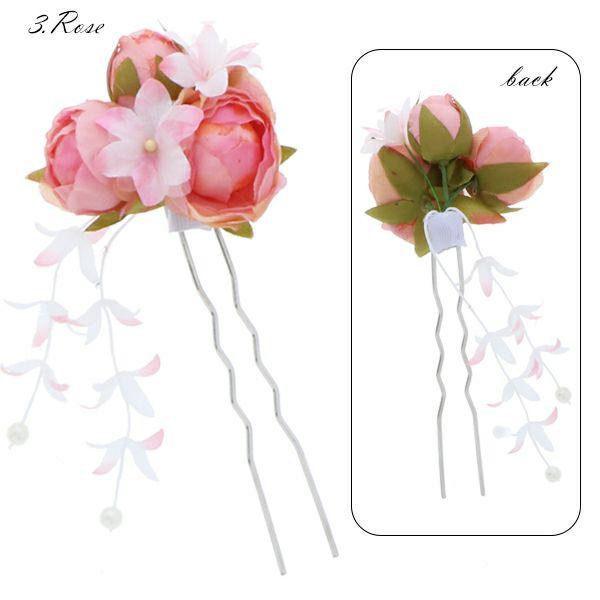 【Prices down2】お花髪飾り「ホワイト、ピンク、ローズ」お花髪飾り 簪 浴衣髪飾り 浴衣かんざし D-J839【メール便不可】ss2512wkk35