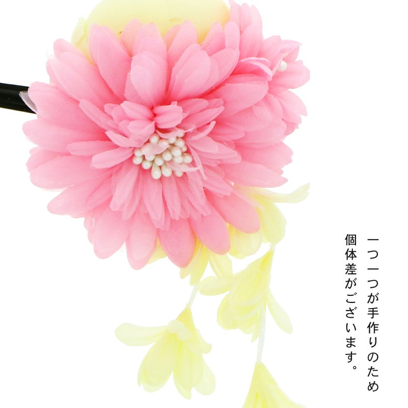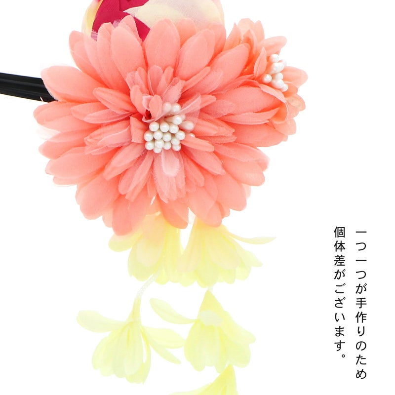 お花と玉薔薇に房飾りがついたかわいい髪飾りです。
