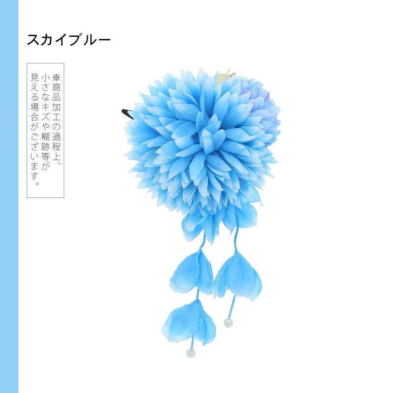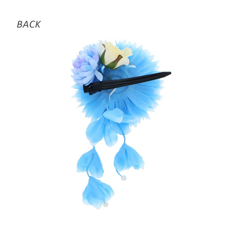 【Prices down3】【訳アリ】【アウトレット品】 クリップ髪飾り 「ダリアとマム、ローズ、房飾り クリップ スカイブルー」 ヘアアクセサリー 大人用・子供用 レディース 着物 和装 浴衣 カジュアル着物 七五三 女の子 ワンポイント 髪飾り単品【メール便不可】ss2506wkk10