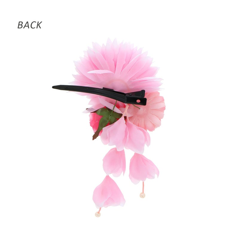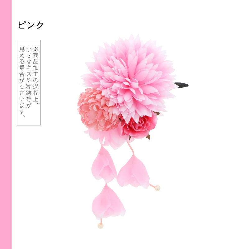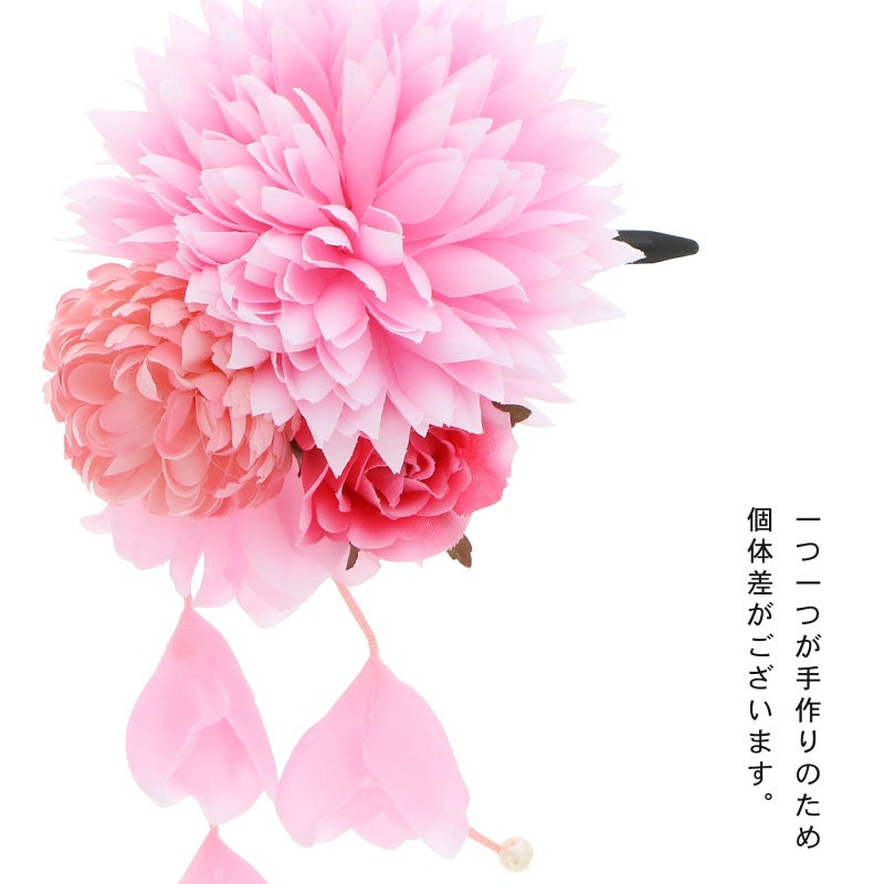 【Prices down3】【訳アリ】【アウトレット品】 クリップ髪飾り 「ダリアとマム、ローズ、房飾り クリップ ピンク」 ヘアアクセサリー 大人用・子供用 レディース 着物 和装 浴衣 カジュアル着物 七五三 女の子 ワンポイント 髪飾り単品【メール便不可】ss2506wkk10