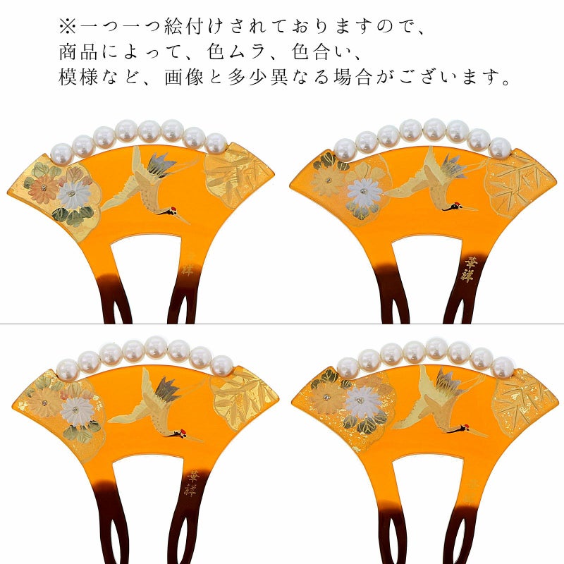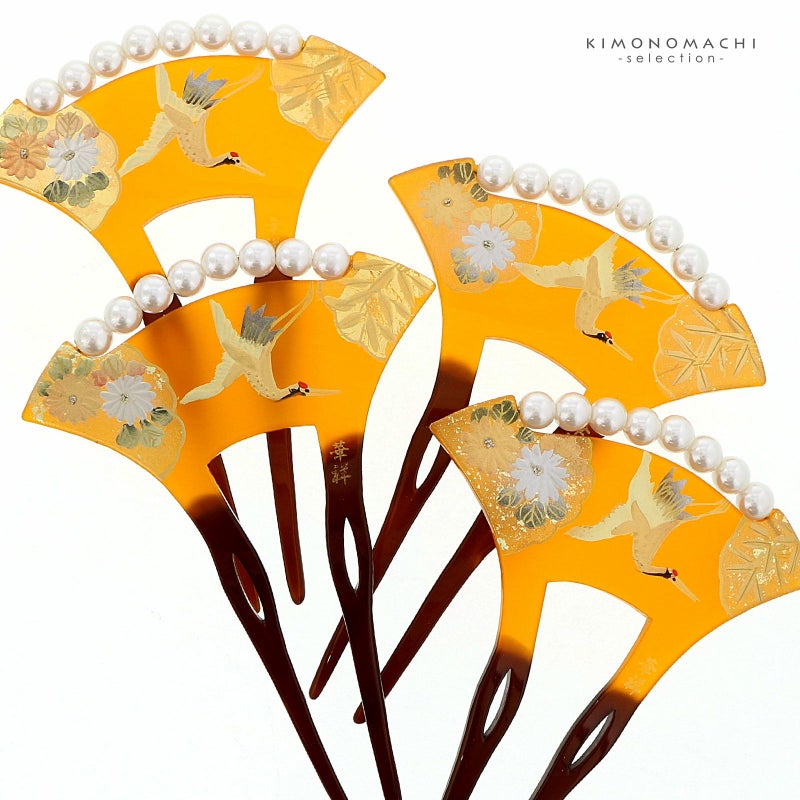 パールかんざし銀杏(イチョウ)型「鼈甲(べっこう)調 雲と鶴」(1453)大人の綺麗な髪飾り♪かんざし♪【メール便不可】<H>ss2409wkk10