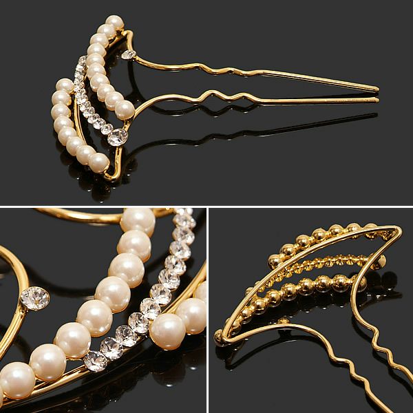 パールビーズ簪「ゴールド×白色パールビーズ、クリアラインストーン」礼装 結婚式 和装髪飾り (IT-0081G)【メール便不可】