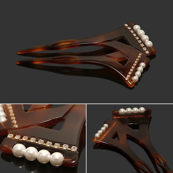 【Prices down4】礼装かんざし「べっ甲調 パールビーズ、ラインストーン」ラインストーンかんざし 結婚式 和装髪飾り 訪問着、留袖に (CM317甲)【メール便不可】ss2509wkk15