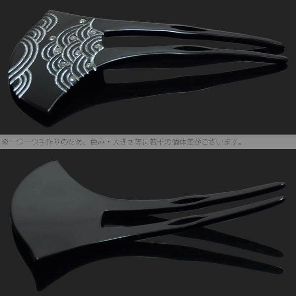 【カラー】黒色台にシルバーの青海波。クリアのラインストーンが煌びやかなアクセントになっています。