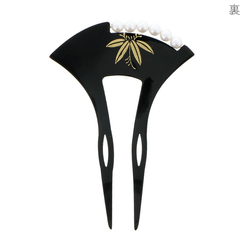 かんざし バチ型 「黒地 パール 小菊 #804」 銀杏型 高級 簪 礼装用 フォーマル着物 和装 留袖 黒留袖 訪問着 色無地 結婚式 パーティー 【メール便不可】<H>