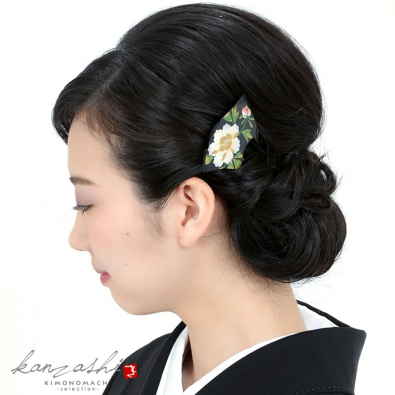 かんざし バチ型 「黒地 牡丹 和ピン #813」 銀杏型 高級 簪 礼装用 フォーマル着物 和装 留袖 黒留袖 訪問着 色無地 結婚式 パーティー 【メール便不可】<H>