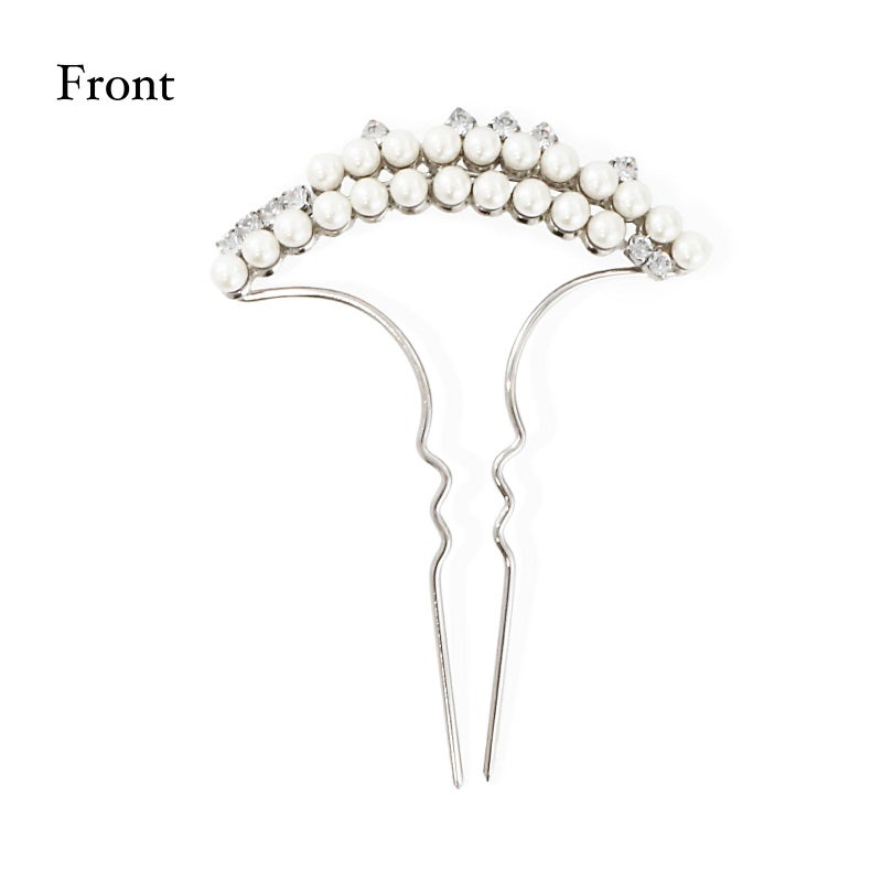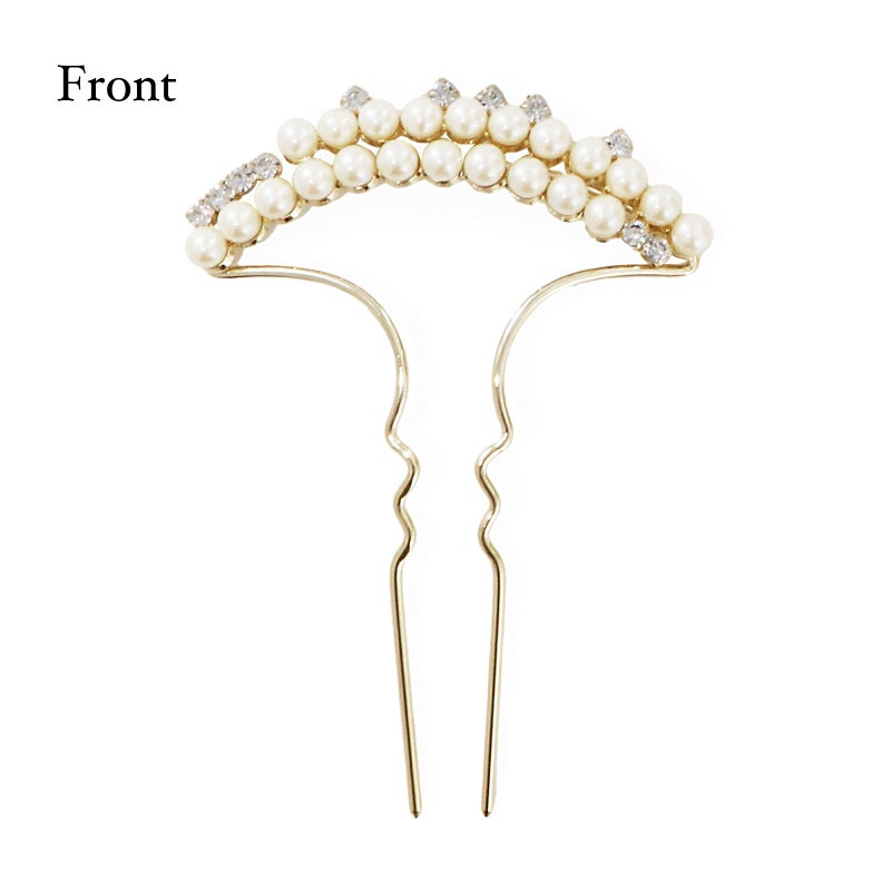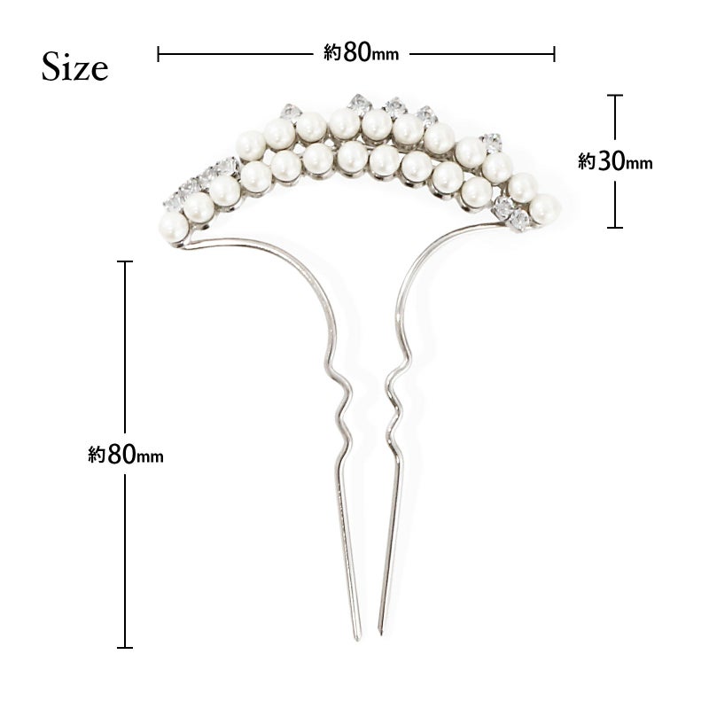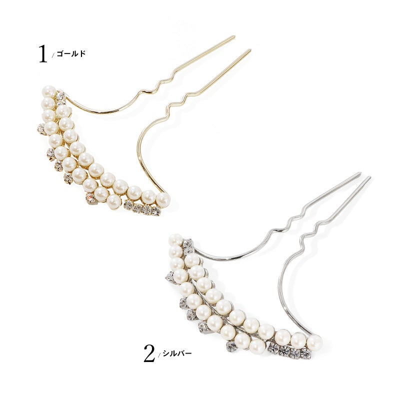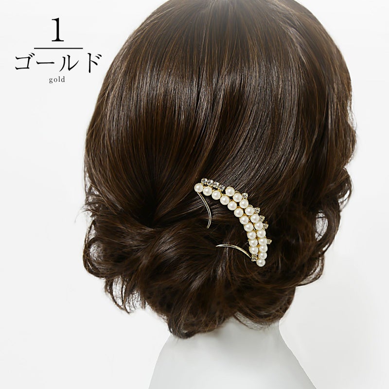 髪飾り かんざし 単品「ゴールド・シルバー 2連パール、ラインストーン」日本製 簪 日本髪 和装 着物 礼装 結婚式【メール便不可】